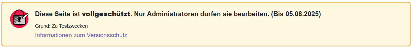 Anzeigebeispiel des Versionsschutz als Info-Box: Editierschutz, außer für Administratoren